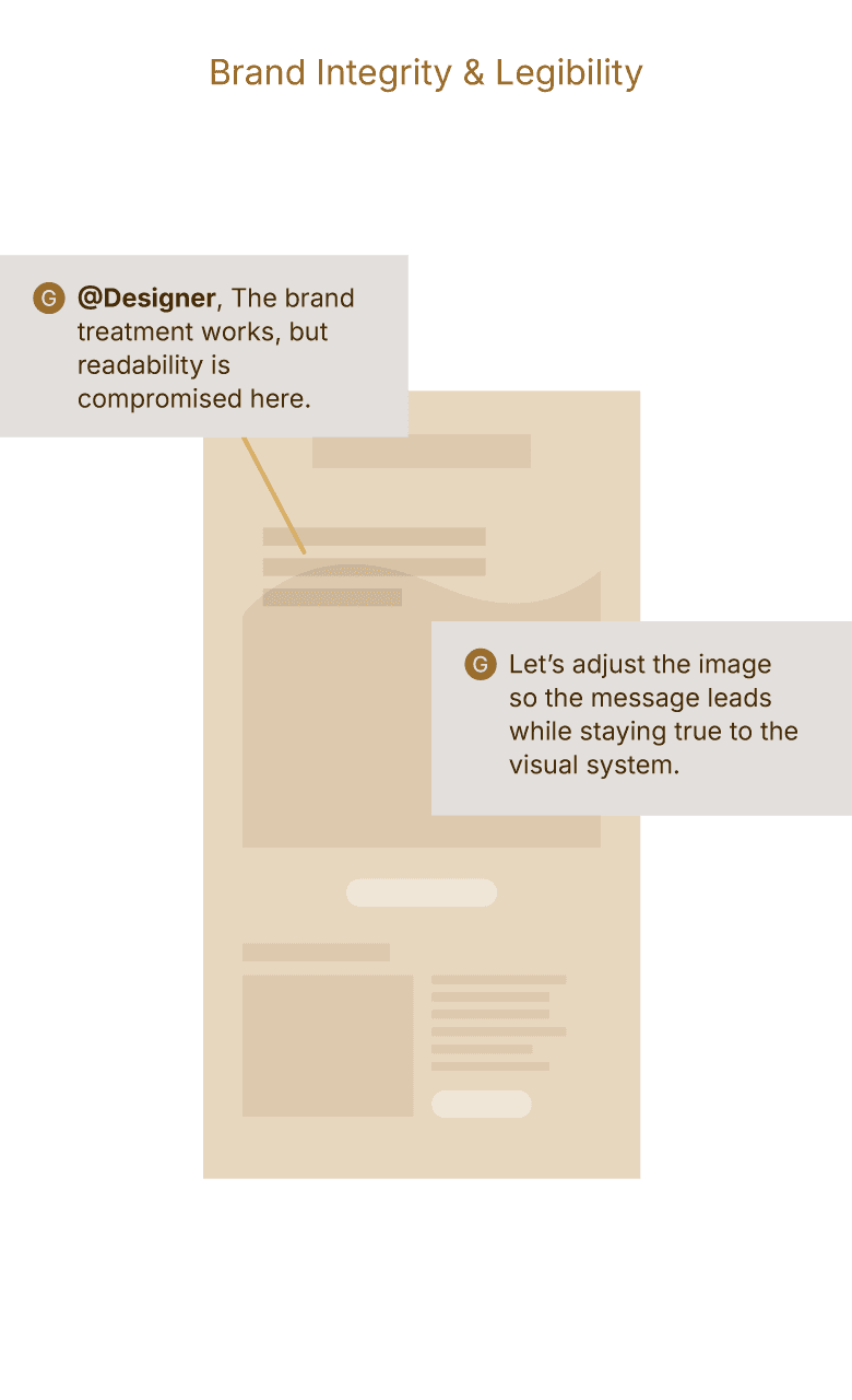In practice: I engage early in concept and alignment stages, working closely with designers, copywriters, project managers, and stakeholders to ensure narrative clarity, visual structure, and consistency before execution begins.